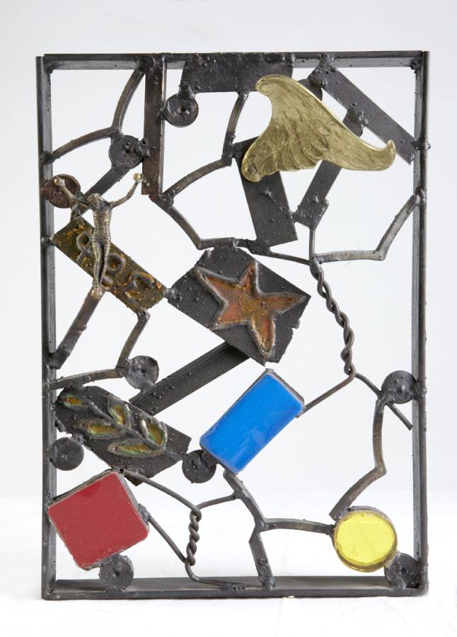 CRUCIFIX iron, bronze, plexiglass, oil paint and ironography 30 x 20 cm 2015